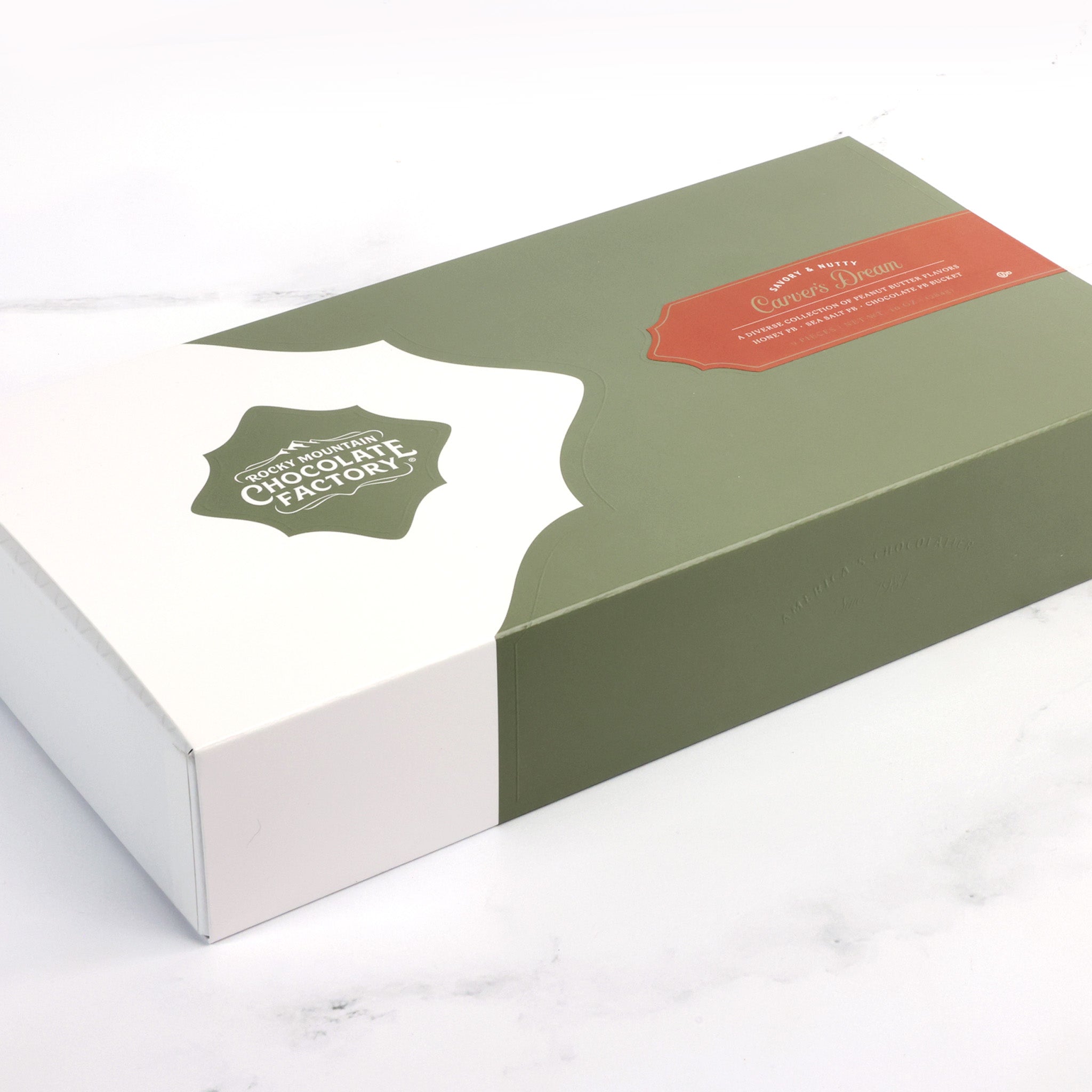 Calling all peanut butter enthusiasts! Our Carver’s Dream boxed assortment is a decadent collection packed with all things peanut butter. This irresistible assortment features a Mountain Sized™ Peanut Butter Bucket enrobed in smooth milk chocolate, milk chocolate Honey Peanut Butter Truffles, and dark chocolate Sea Salt Peanut Butter Mini Truffles.